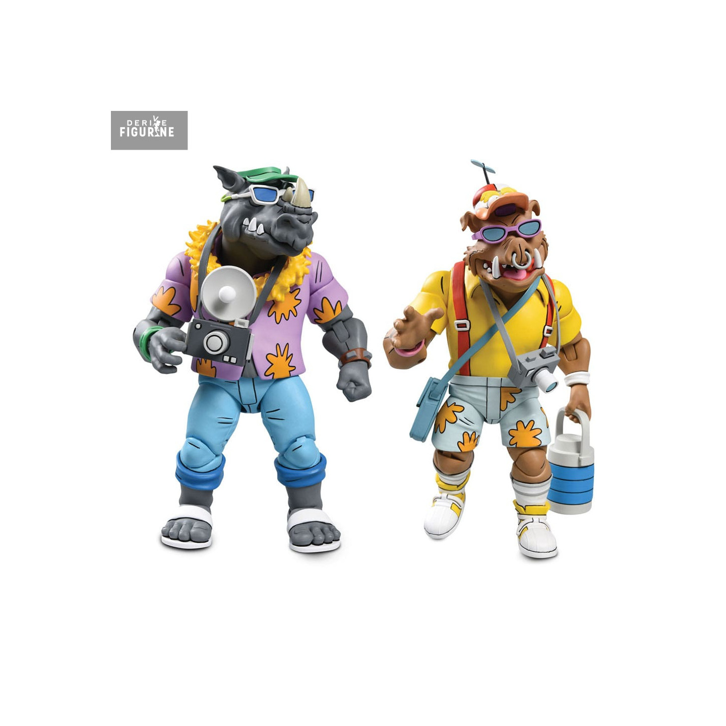 Pack figurines officielles de Bebop and Rocksteady, Vacation mesurant environ 18 centimètres de haut. Le fabricant est NECA.