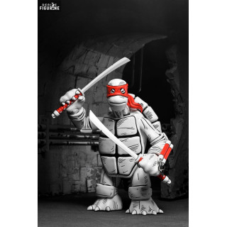 Fabriquées par le célèbre NECA, ces figurines mesurent environ 18 centimètres de haut et se distinguent par leur articulation impressionnante, permettant de recréer les poses dynamiques des Tortues Ninja en pleine action. Leur design en noir et blanc accentue les ombrages et donne un effet artistique unique, parfait pour les fans de la première heure et les collectionneurs avertis.