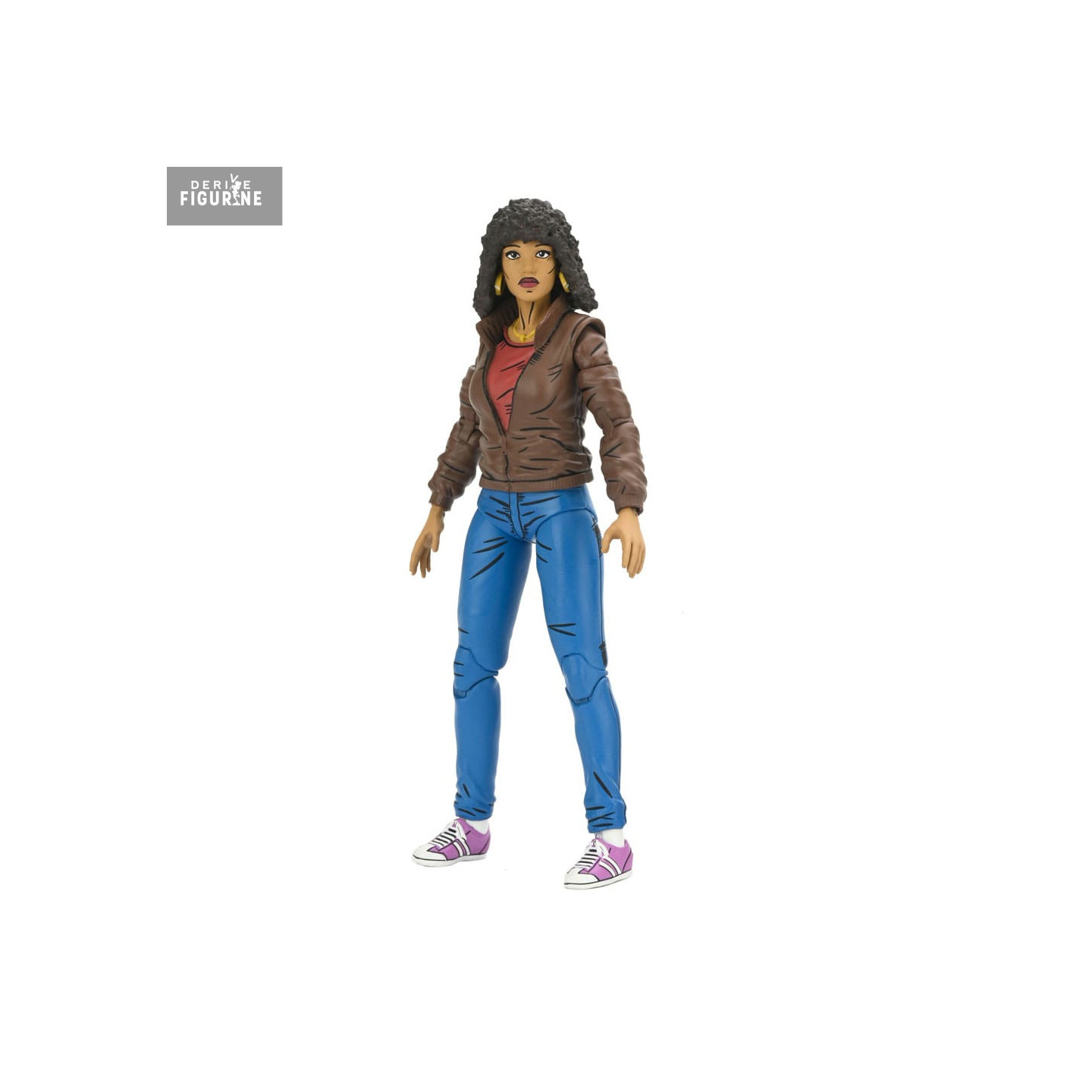 Figurine officielle de April O'Neil (Version 2) mesurant environ 18 centimètres de haut. Le fabricant est NECA.