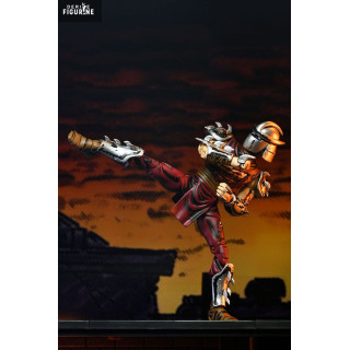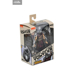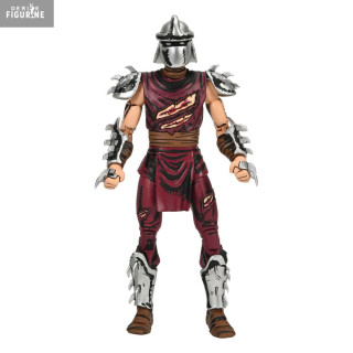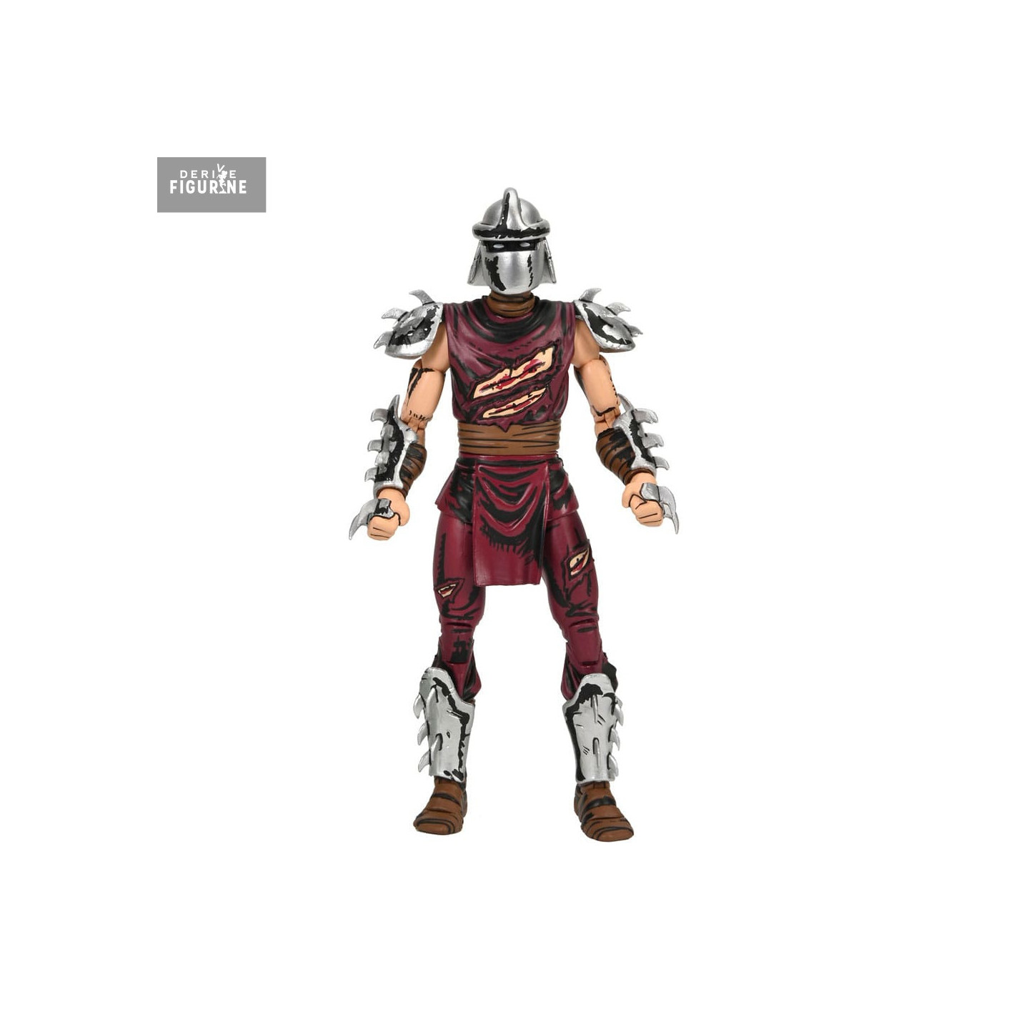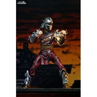 Figurine officielle de Shredder, Battle Damaged mesurant environ 18 centimètres de haut. Le fabricant est NECA.