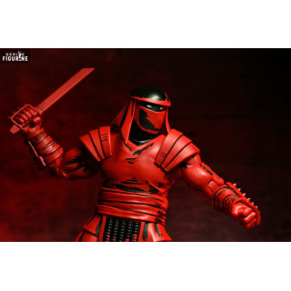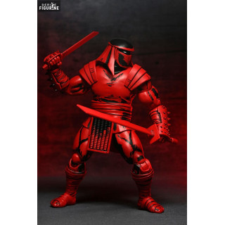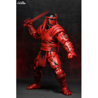 Cette figurine en PVC de 18 cm, produite par NECA, arbore une apparence rouge et noire inspirée des dessins bruts et sombres des Mirage Comics. Son design massif et intimidant est renforcé par une armure renforcée, un masque dissimulant son visage, et des détails de peinture reproduisant le style original des bandes dessinées. Il est accompagné d’un large choix d’armes interchangeables, incluant un katana, une lance, un nunchaku et une dague, ainsi que plusieurs paires de mains alternatives permettant de varier les poses et de recréer des scènes de combat intenses. Une figurine incontournable pour les amateurs de la saga originale TMNT !