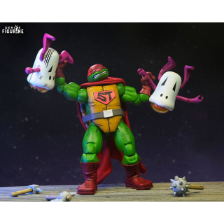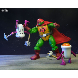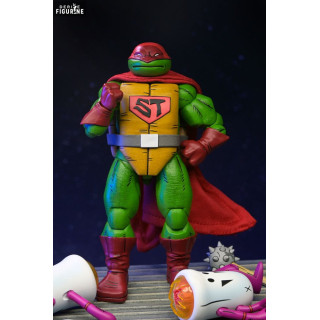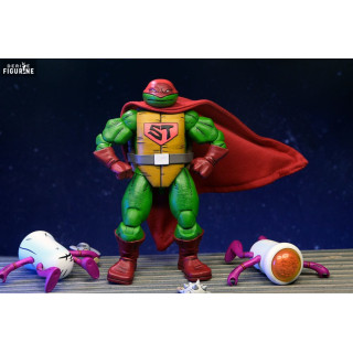 Dans l’univers des TMNT, cette version est un clin d'œil aux bandes dessinées et aux références aux comics de super-héros des années 80. Avec son apparence musclée, son masque expressif interchangeable, et son arsenal d’armes médiévales, Super Turtle incarne une version puissante et courageuse d’un combattant qui ne recule devant aucun danger.