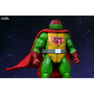 Plongez dans un univers alternatif des Tortues Ninja avec cette figurine officielle de Super Turtle, une version héroïque des célèbres combattants de l’ombre inspirée des Mirage Comics. Reprenant les codes des super-héros classiques, Super Turtle se distingue par son costume iconique, son emblème sur le plastron et sa cape rouge, le tout donnant un style inédit à cette incarnation de la célèbre tortue mutante. Dans certaines adaptations et concepts alternatifs des Teenage Mutant Ninja Turtles, les Tortues sont réimaginées en véritables justiciers aux pouvoirs amplifiés, se battant pour la justice au-delà des rues de New York.
