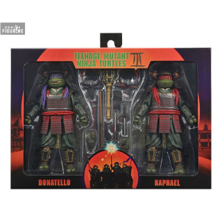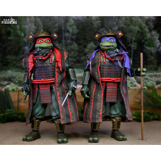 Dans cette aventure, Donatello est fidèle à lui-même : l’intellectuel du groupe, toujours prêt à résoudre des énigmes et utiliser la science pour trouver une solution. Il porte ici une armure traditionnelle de samouraï, agrémentée de détails d’époque qui lui confèrent un look unique. Raphael, quant à lui, se distingue par son côté rebelle et impulsif. Dans ce voyage temporel, il est confronté à sa propre vision du combat et de la justice, ce qui lui permet d’évoluer en tant que guerrier et frère. Les deux ninjas arborent des costumes fidèles au film, mettant en avant leur adaptation à cette époque.