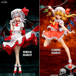 Figurine officielle au choix entre Flandre Scarlet (~24 cm) ou Remilia Scarlet (~18 cm) en PVC, à l'échelle 1/8. Le fabricant est Ques Q.