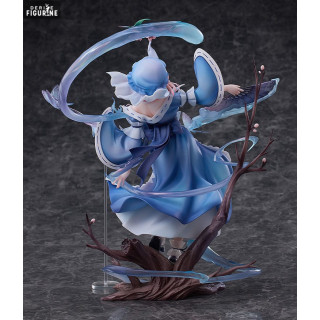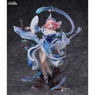 Cette figurine capture Yuyuko au cœur de son élément : vêtue de sa robe traditionnelle d’un bleu pastel bordé de blanc, elle semble flotter au-dessus d’un tronc tortueux, le jupon soulevé par un souffle immatériel. Sa posture, élégamment penchée, évoque à la fois la légèreté d’un esprit et la puissance apaisante d’une souveraine des morts.