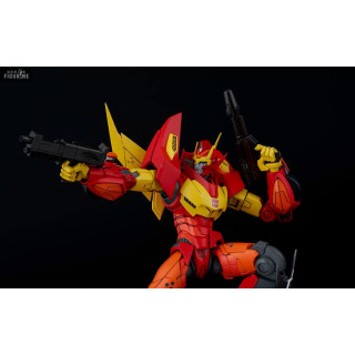 Une figurine articulée de la licence Transformers signée Flame Toys est celle de Rodimus! Ce cher autobot que l'on connaît aussi sous le nom de Hot Rod mesurant 15 centimètres de haut est livré avec différents types de mains et deux types d'armes. Cela serait à vous de le mettre le plus en valeur en le positionnant de la manière qui vous convient le plus !