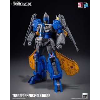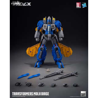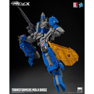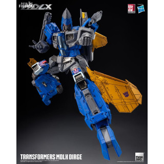 Reconnaissable entre mille avec ses ailes delta inversées jaunes et son look bleu nuit, Dirge incarne la peur. Son design est ici repensé dans un style semi-réaliste propre à la gamme MDLX, avec un corps blindé, texturé, et des effets de peinture métallique qui accentuent chaque articulation, chaque pli de son armure cybertronienne.