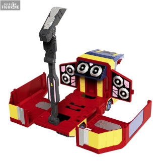 Le design au top : la robe rouge éclatante se pare de touches jaunes et bleues, tandis que les haut-parleurs blancs et noirs contrastent avec les panneaux latéraux qui s’ouvrent comme des ailes de scène. Les lignes anguleuses du torse et les élégants panneaux de carrosserie capturent l’esthétique à la fois mécanique et organique de la franchise Transformers.