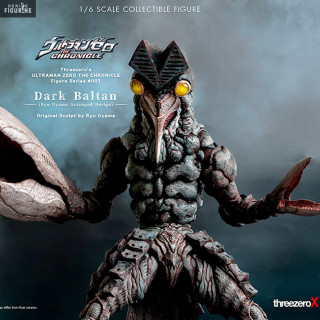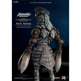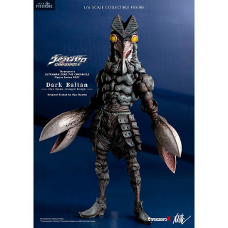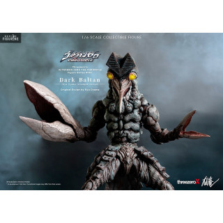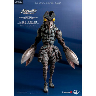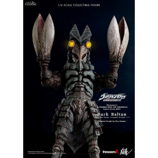 Figurine officielle de Dark Baltan en PVC mesurant environ 36 centimètres de haut, à l'échelle 1/6. Le fabricant est Threezero.