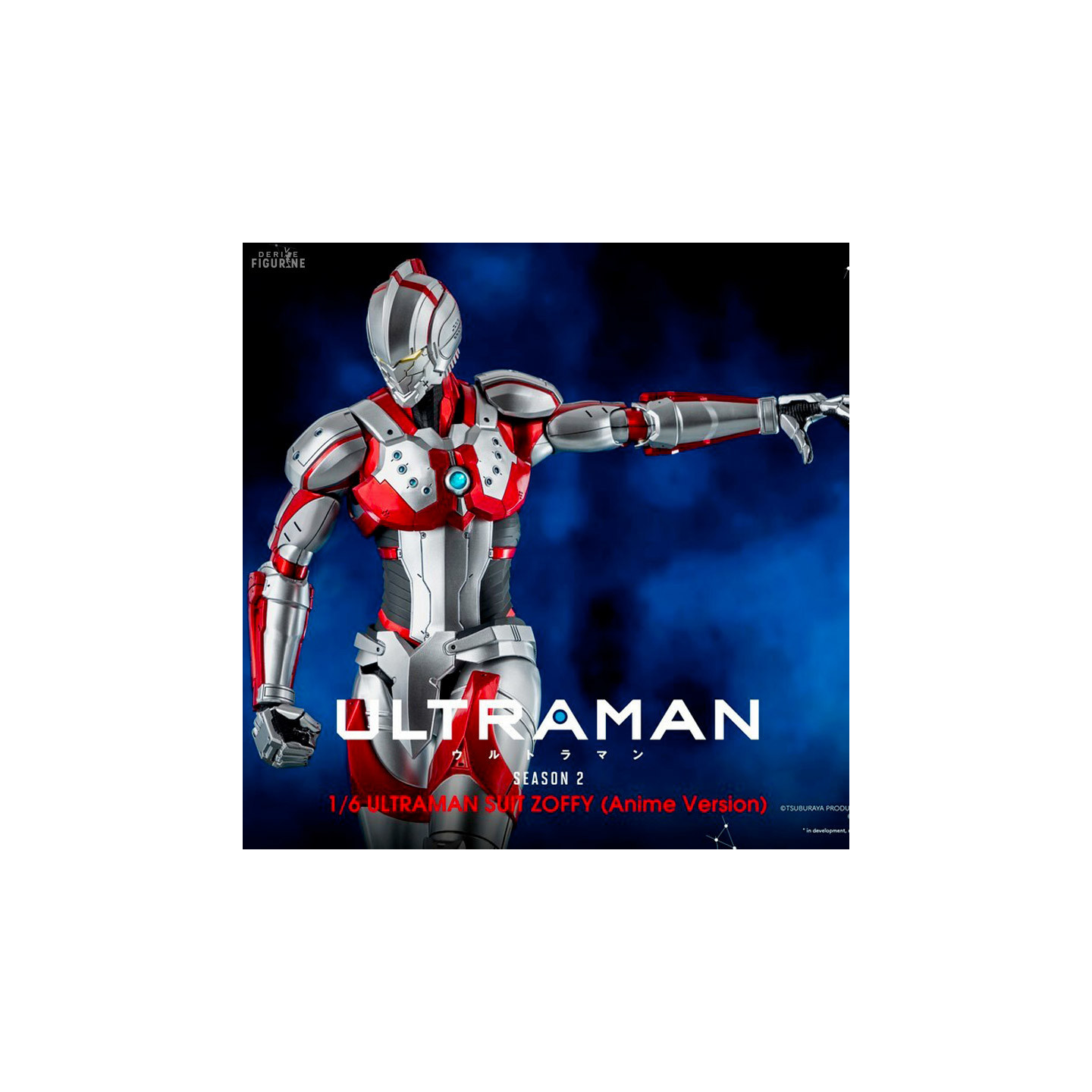 Figurine officielle de BUltraman Zoffy Suit mesurant environ 30 centimètres, à l'échelle 1/6. Elle est issue de la collection FigZero. Le fabricant est ThreeZero.