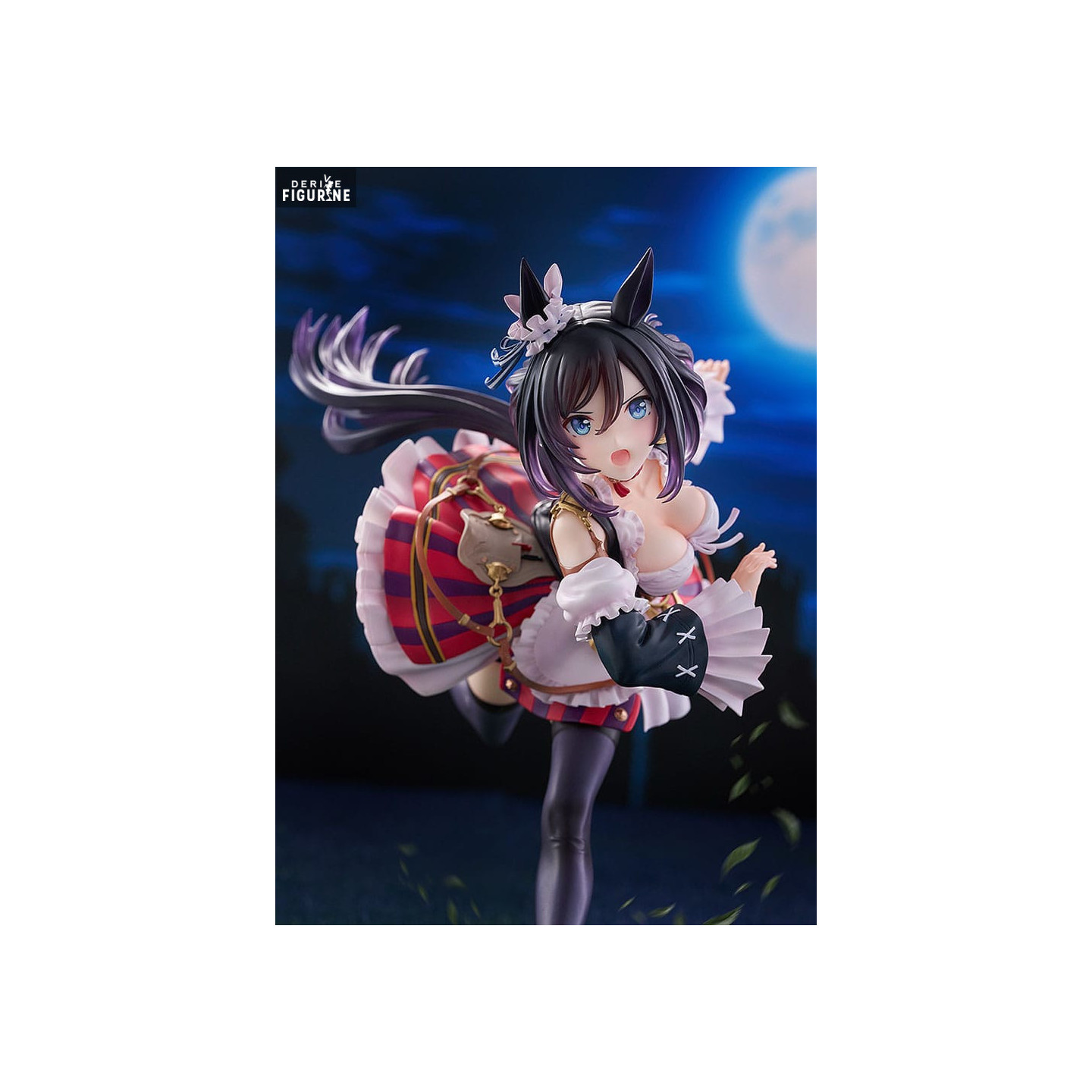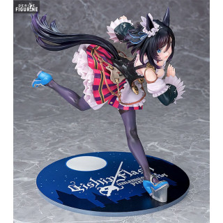 Cette figurine en PVC, fabriquée par Phat! Company, mesure environ 19 centimètres de hauteur et est réalisée à l'échelle 1/7. La finition de la figurine est remarquable, notamment dans les détails de son costume complexe et l'effet de transparence sur ses bas. La base colorée sur laquelle elle est posée ajoute une touche de contraste et met en avant l'univers de la série. Avec cette pièce, les fans de Uma Musume Pretty Derby peuvent retrouver toute l’énergie et le charme d’Eishin Flash dans leur collection.
