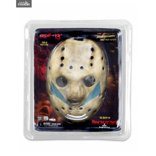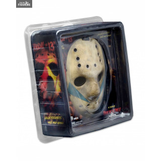 Réplique officielle du masque de Jason Voorhees en résine, à l'échelle 1/1. Le fabricant est NECA.