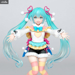 Figurine officielle de Hatsune Miku, Winter Image en PVC mesurant environ 18 centimètres. Le fabricant est Taito.