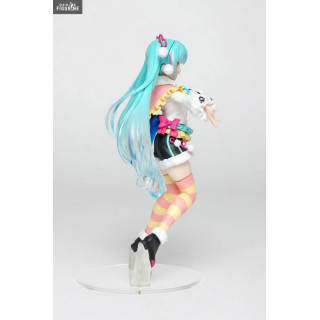 Cela a beau être l'hiver, notre chère Miku Hatsune est toujours aussi coquette. Elle porte un short noir bordé de fourrure ainsi que des chaussettes hautes rayées. Ajoutez quelques froufrous, des pompons et des nœuds et le tour est joué pour avoir cette belle figurine.