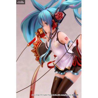 Comme souvent, cette nouvelle figurine de Miku Hatsune est très aérienne. Entre les drapeaux à ses pieds et ses cheveux qui flottent au vent, le rendu est vraiment réussi. De plus, les détails sur ses vêtements ou même sur les fleurs dans ses cheveux sont un plus qui vient sublimer le tout.