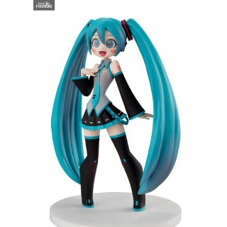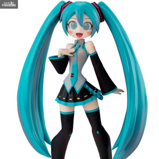 Figurine officielle de Hatsune Miku en PVC mesurant environ 16 centimètres de haut. Le fabricant est FuRyu.