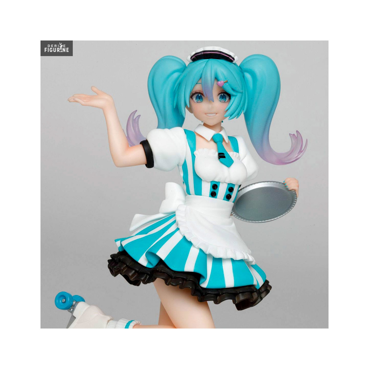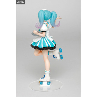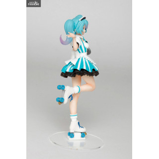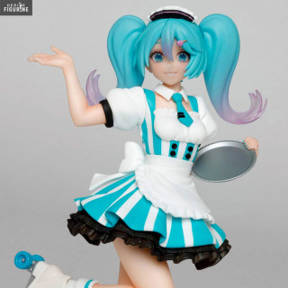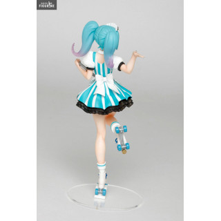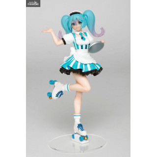 En plus de son métier d'idole, Miku Hatsune a trouvé un petit boulot en plus en temps que serveuse dans un café. Elle a enfilé sa tenue, ses patins à roulettes et a pris son plateau, elle est donc fin prête à venir prendre votre commande. Qui ne rêverait pas d'avoir une serveuse aussi mignonne ?