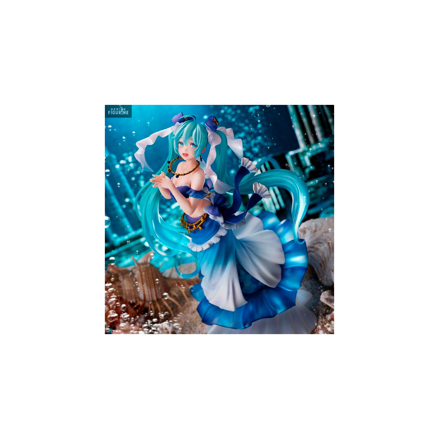 Miku Hatsune est toujours aussi belle et le moins que l'on puisse dire, c'est qu'en étant une sirène, elle saura encore plus conquérir le cœur de ses fans. Elle n'aura qu'à se mettre à chanter et le tour est joué. En plus, sa jupe avec des écailles est vraiment très réussi et lui va parfaitement bien.