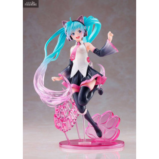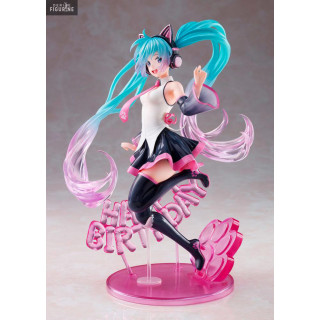 Figurine officielle de Hatsune Miku Happy Cat Birthday 2021 en PVC mesurant environ 23 centimètres de haut. Elle est issue de la collection Artist Masterpiece. Le fabricant est Taito.