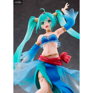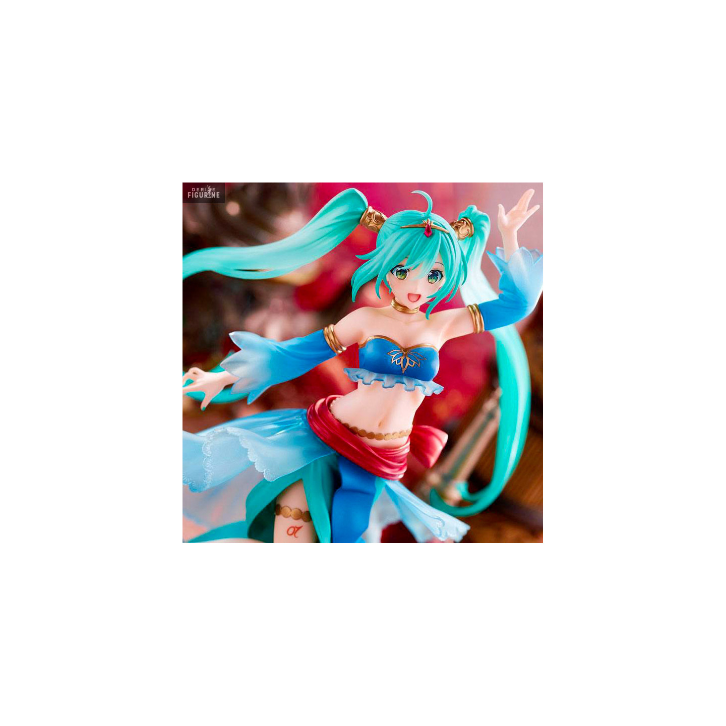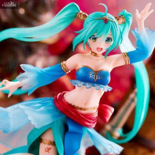 C'est dans les comptes des mille et unes nuits que cette figurine de Hatsune Miku nous emporte. On sent déjà les effluves des épices, la chaleur du soleil sur notre peau et le sable sous nos pieds. Elle donne aussi envie de danser et se déhancher sur des rythmes de folie. Alors si vous aussi vous êtes transporté, pourquoi ne pas ajouter cette figurine à votre collection ?