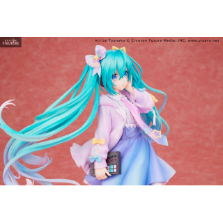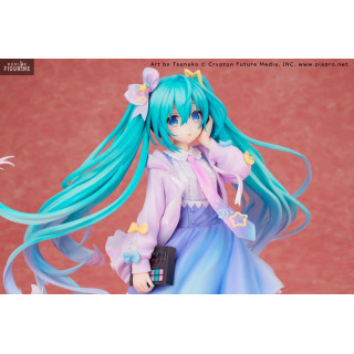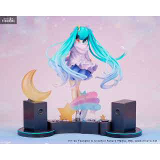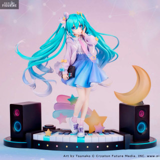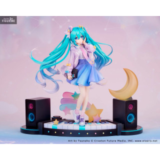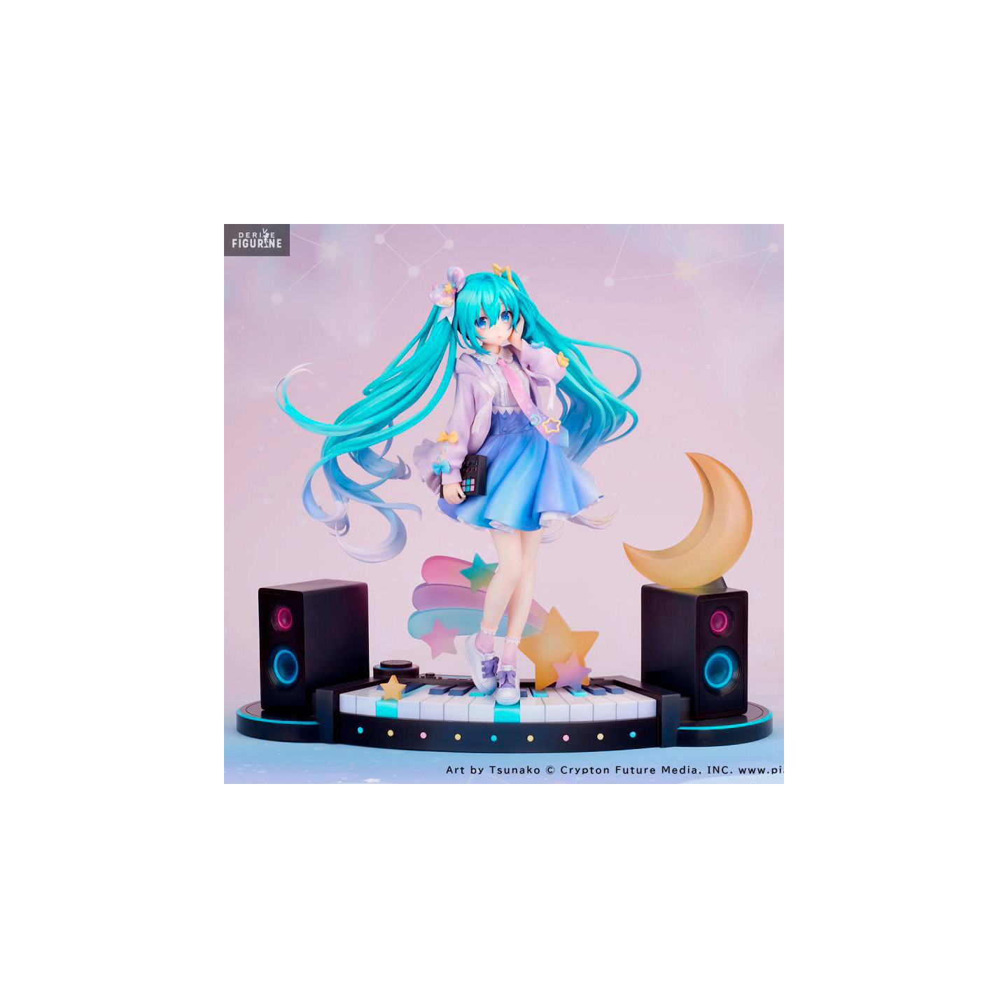 Nouvelle figurine pour la talentueuse et mignonne Hatsune Miku et la célèbre Vocaloid est ici dans une version tirée de l'événement Digital Stars 2021 et d'une illustation de Tsunako. Miku est ici présentée sur un socle diorama avec des hauts parleurs mais aussi un clavier MIDI.