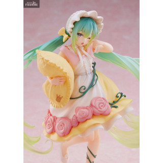 Figurine officielle de Hatsune Miku, Sleeping Beauty en PVC mesurant environ 18 centimètres de haut. Elle est issue de la collection Wonderland Figure. Le fabricant est Taito.
