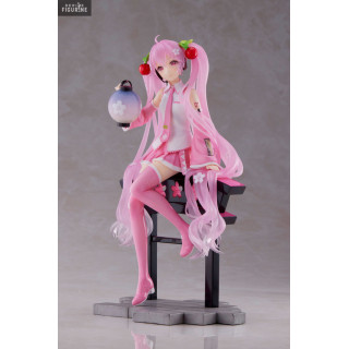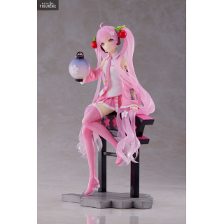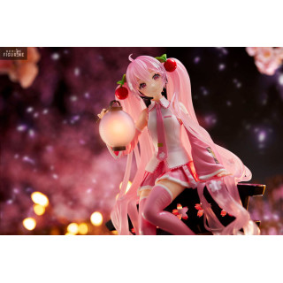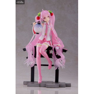 Figurine officielle de Sakura Miku en PVC mesurant environ 20 centimètres de haut. Elle est issue de la collection AMP+. Le fabricant est Taito.