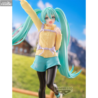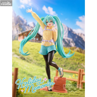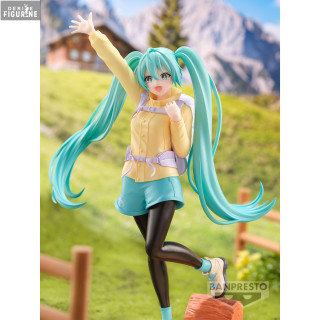 Figurine officielle de Hatsune Miku, Holiday Memories Mountain Climbing en PVC mesurant environ 20 centimètres de haut. Le fabricant est Banpresto.