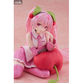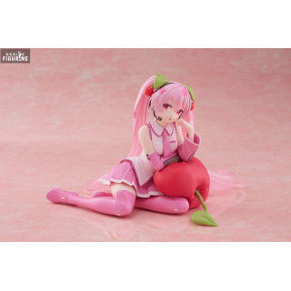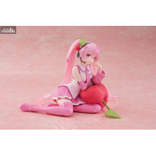 Figurine officielle de Sakura Mikun Cherry Cushion en PVC mesurant environ 13 centimètres de haut. Elle est issue de la collection Desktop Cute Figure. Le fabricant est Taito.