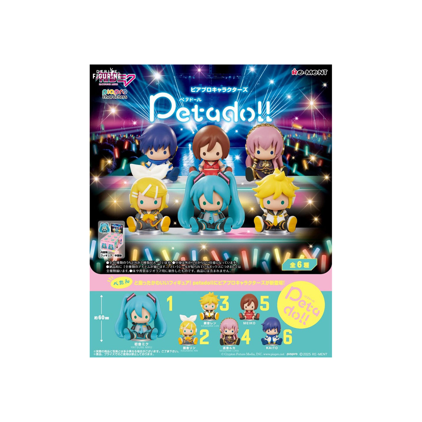 Figurines officielles de Vocaloid en PVC mesurant environ 6 centimètres de haut. Elles sont issues de la collection Petadoll. Le fabricant est Re-Ment.
