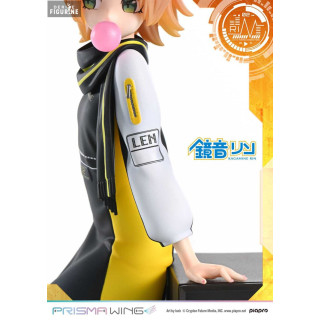 Figurine officielle de Kagamine Rin en PVC mesurant environ 21 centimètres, à l'échelle 1/7. Elle est issue de la collection Prisma Wing. Le fabricant est Prime 1 Studio.
