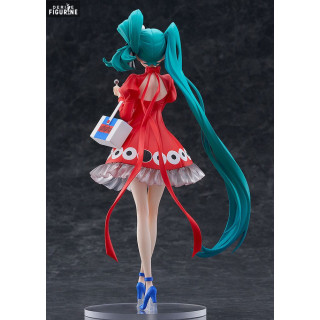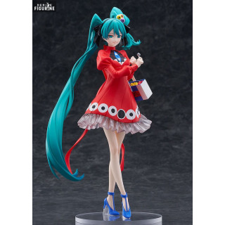 Hatsune Miku, l'idole virtuelle mondialement connue, revient dans une nouvelle interprétation captivante avec cette figurine Psi. Véritable pionnière des vocaloids, Miku est l’incarnation de la musique électronique et de la culture pop japonaise. Avec ses longues couettes turquoise iconiques et son style unique, elle a su conquérir les cœurs de millions de fans à travers le monde. Cette fois, Miku adopte une allure décontractée et charmante, vêtue d'une robe rouge vibrante ornée de motifs accrocheurs qui reflètent parfaitement son esprit espiègle et créatif.