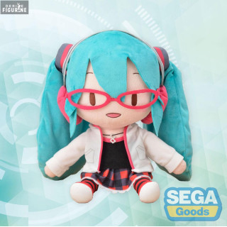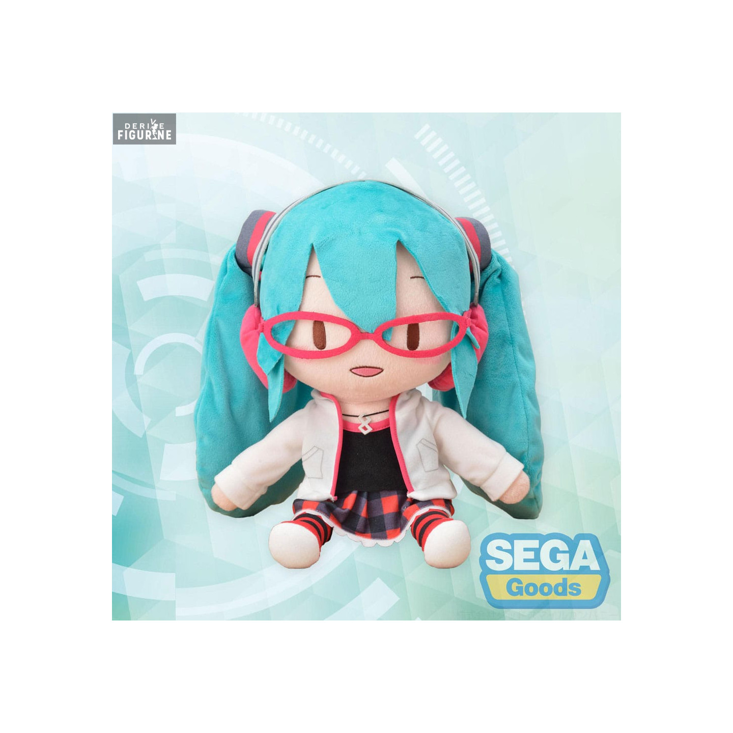 Cette peluche LL (Large) mesure environ 30 centimètres de haut et met en scène Miku dans une tenue décontractée et moderne : lunettes roses, jupe à carreaux rouge et noire, bas rayés et veste légère blanche bordée de rose. Ses fameuses couettes turquoise sont fidèlement représentées, apportant une touche de fantaisie typique de la Vocaloid iconique. L’ensemble offre une version plus quotidienne et attendrissante de Miku, parfaite pour tous les fans qui souhaitent l’adopter dans une forme pleine de tendresse.