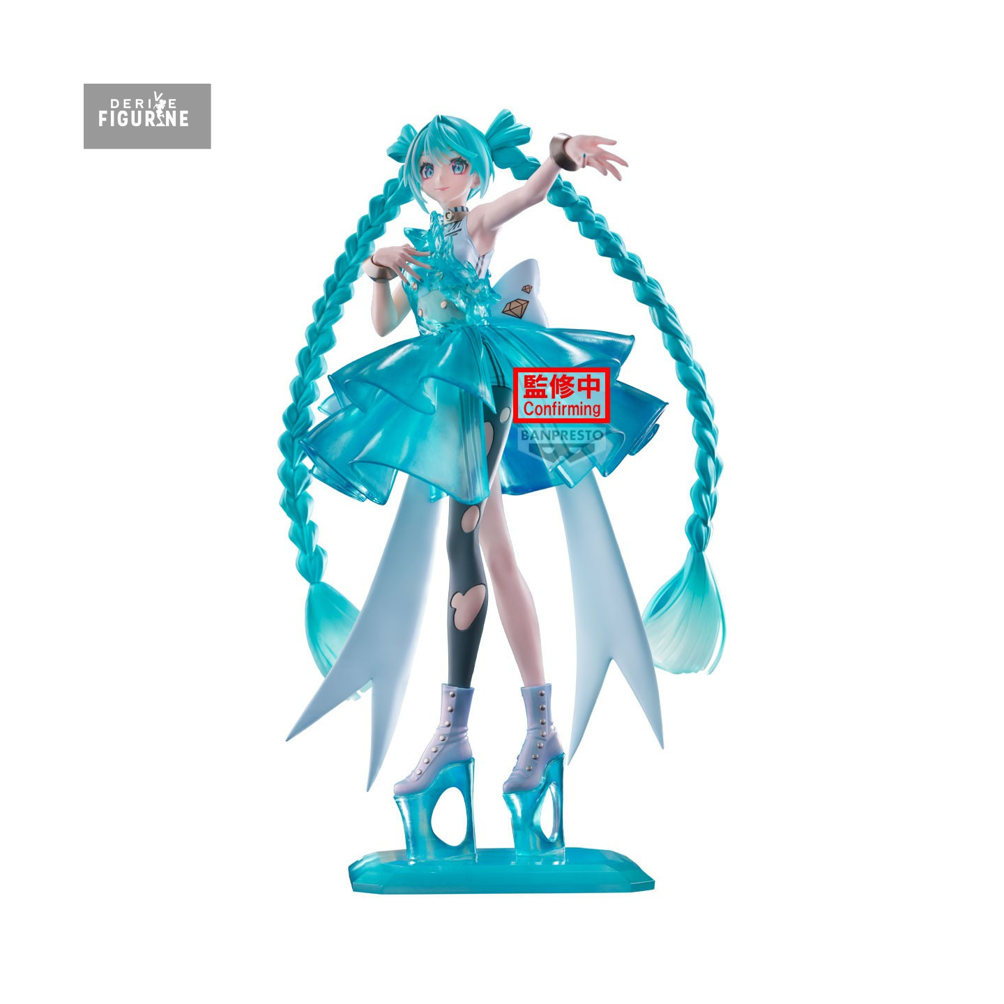 Figurine officielle de Hatsune Miku, EmeraldGem en PVC mesurant environ 28 centimètres de haut. Elle est issue de la collection Evolve Clearluxe. Le fabricant est Banpresto.
