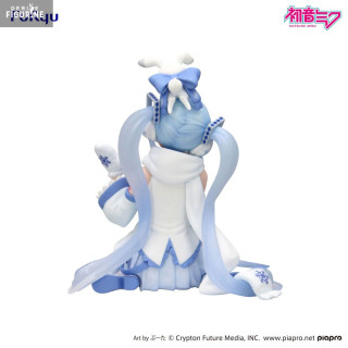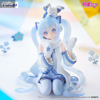 Figurine officielle de Snow Miku, Sky Town 10th en PVC mesurant environ 10 centimètres de haut. Elle est issue de la collection Noodle Stopper. Le fabricant est FuRyu.