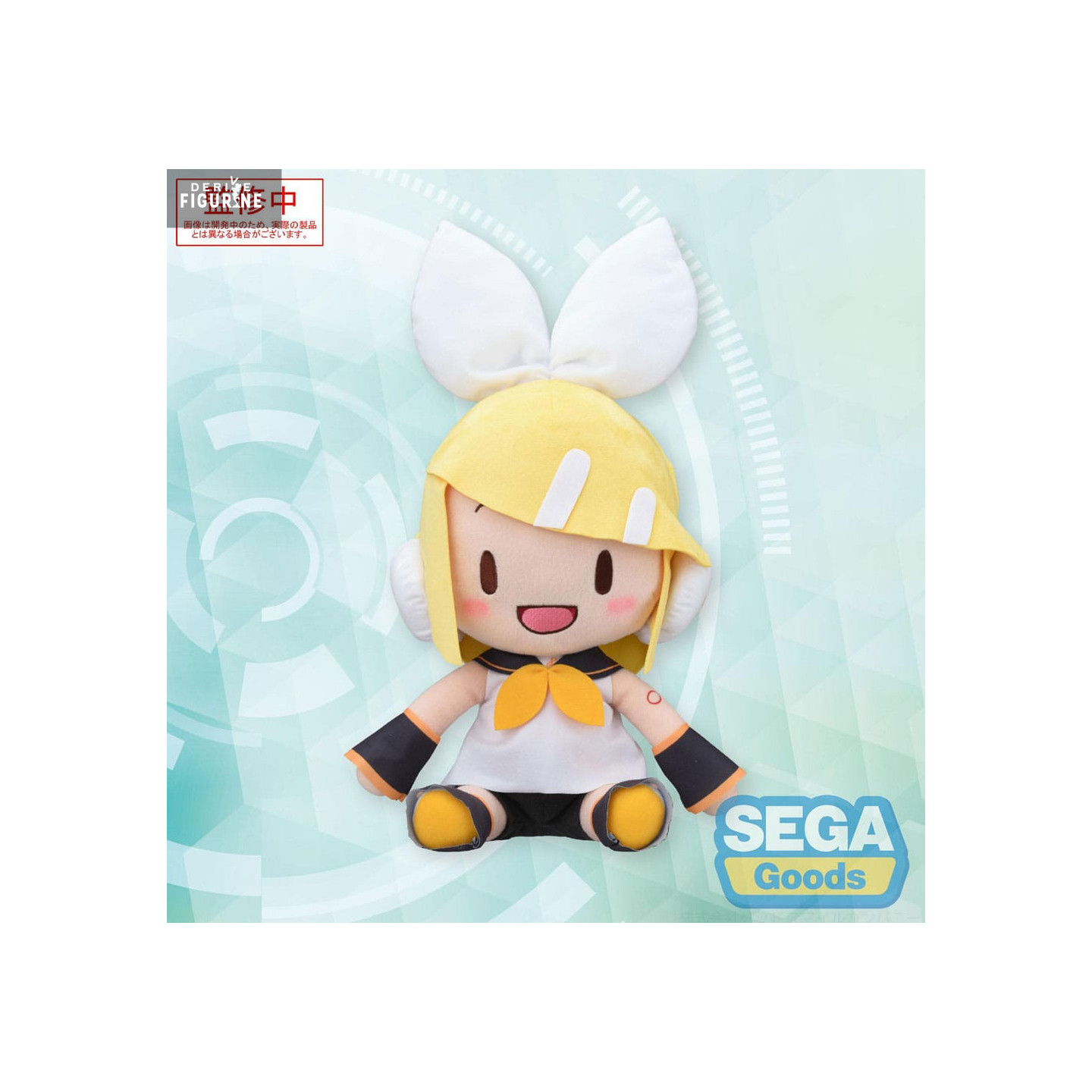 Peluche officielle de Kagamine Rin, MEJ en 100% polyester mesurant environ 32 centimètres de haut. Elle est issue de la collection Fuwa Petit. Le fabricant est SEGA.
