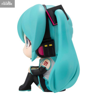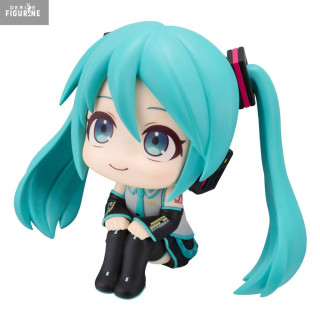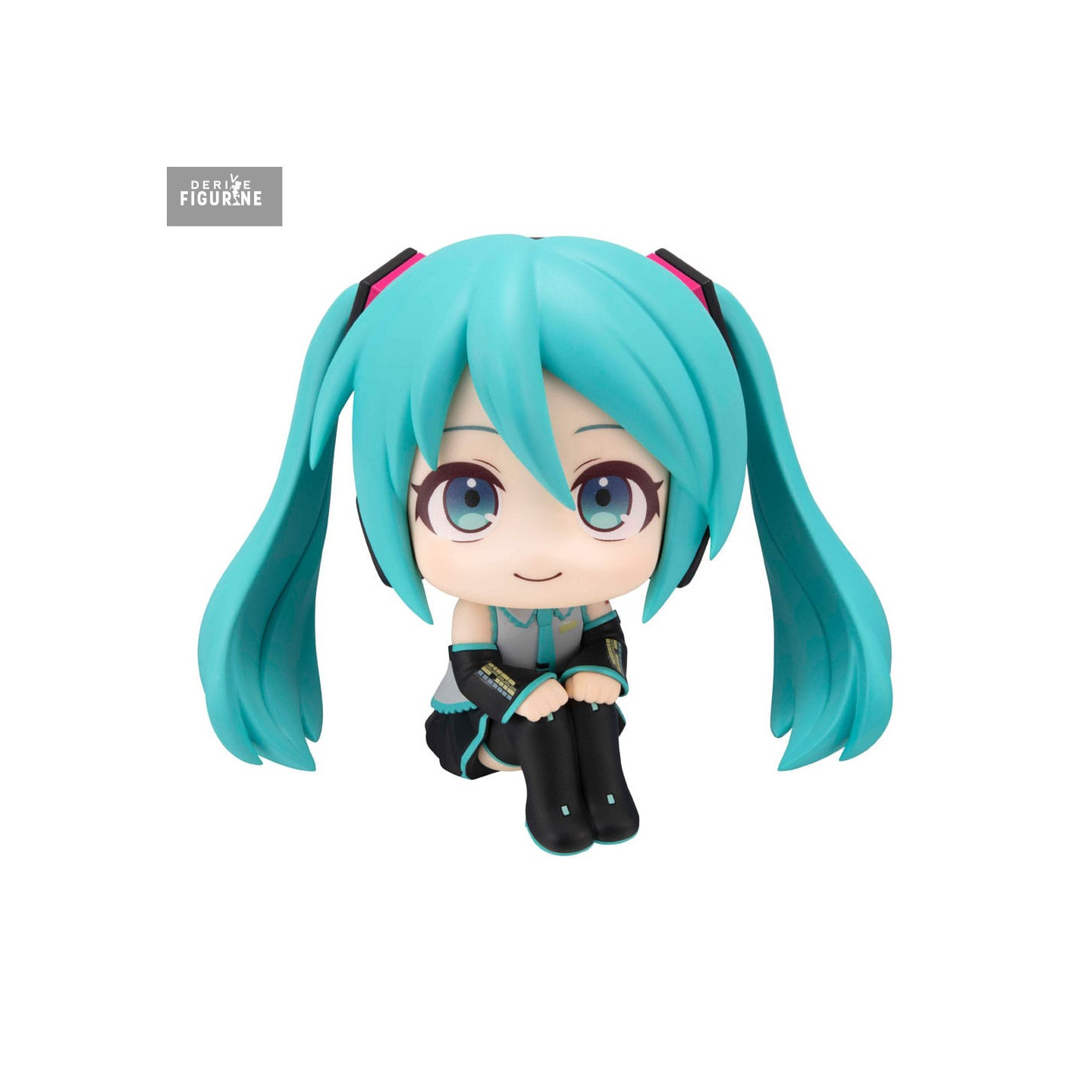 Cette version Look Up présente Miku dans un format chibi adorable, assise avec les genoux relevés et la tête légèrement inclinée vers le haut, comme pour croiser ton regard. Sa posture et son expression douce dégagent une complicité instantanée.