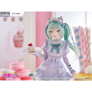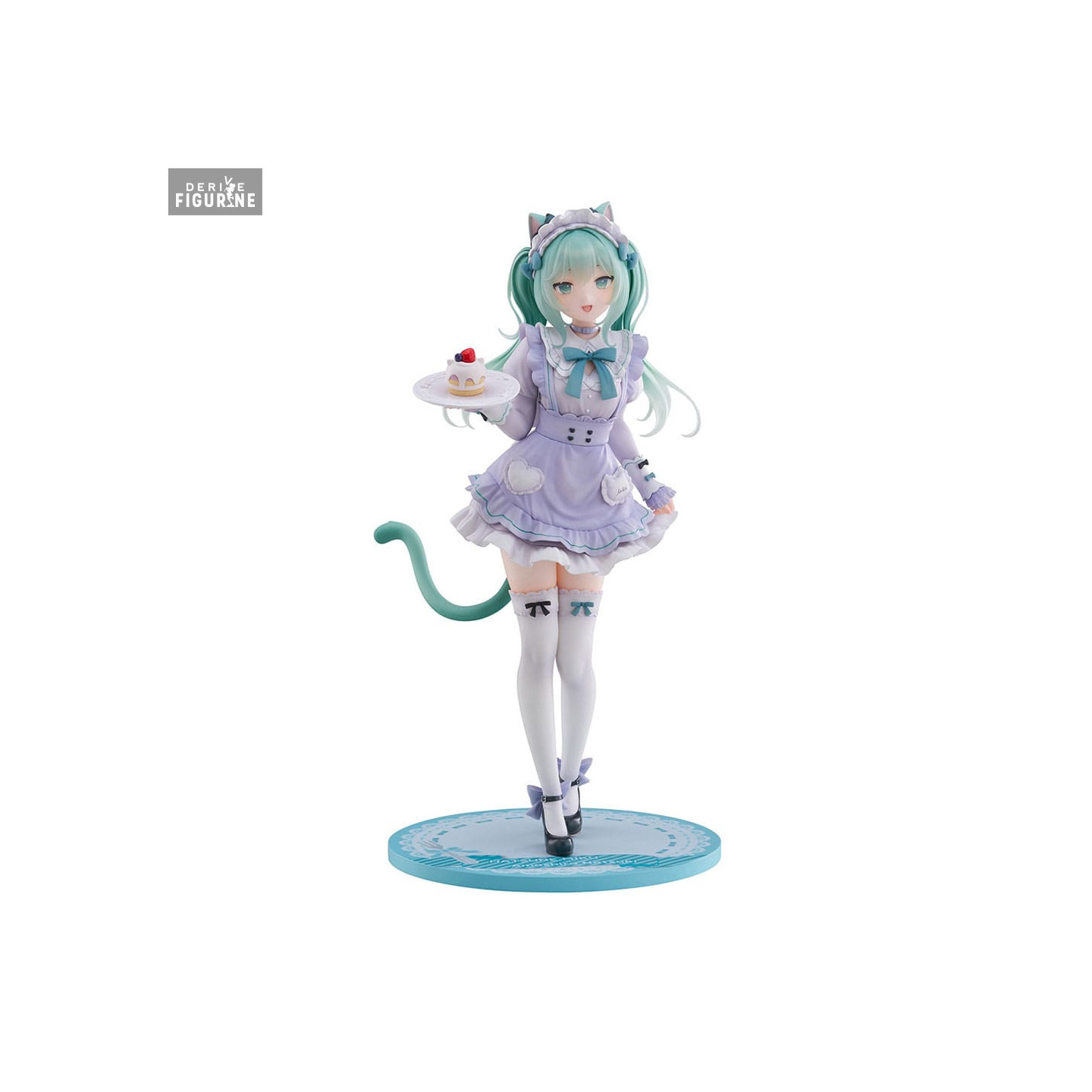 Éléments spéciaux : tenue de maid pastel, oreilles et queue de chat, assiette avec gâteau, socle décoré