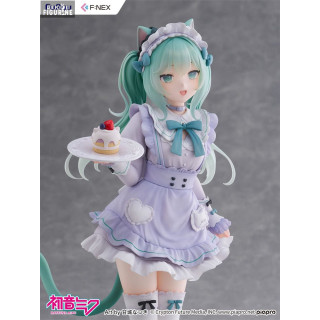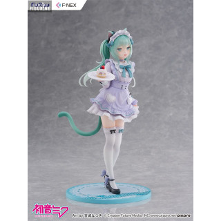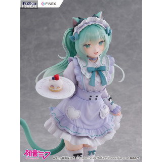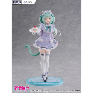 Cette version de Miku est issue d’une collaboration artistique entre l’icône virtuelle et l’illustratrice Amashiro Natsuki, connue pour ses univers doux, sucrés et romantiques. Ici, Miku endosse le rôle d’une serveuse de café félin, dans un style résolument pastel et charmant, à mille lieues de son look futuriste habituel.