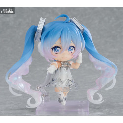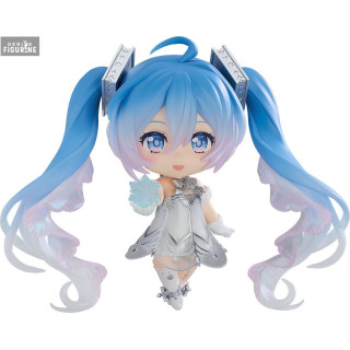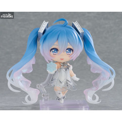 Toujours souriante et gracieuse, cette version chibi de Miku adopte les traits adorables typiques de la collection Nendoroid. Elle est représentée avec une robe argentée à détails ciselés, une posture dynamique et plusieurs expressions faciales, offrant ainsi diverses options d'exposition. Son design reste fidèle à son personnage tout en intégrant les éléments visuels du concert.