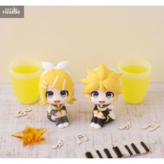 Figurines officielles de Kagamine Rin & Len, (with gift) en PVC mesurant environ 11 centimètres de haut. Elles sont issues de la collection Look Up. Le fabricant est Megahouse.