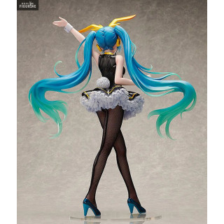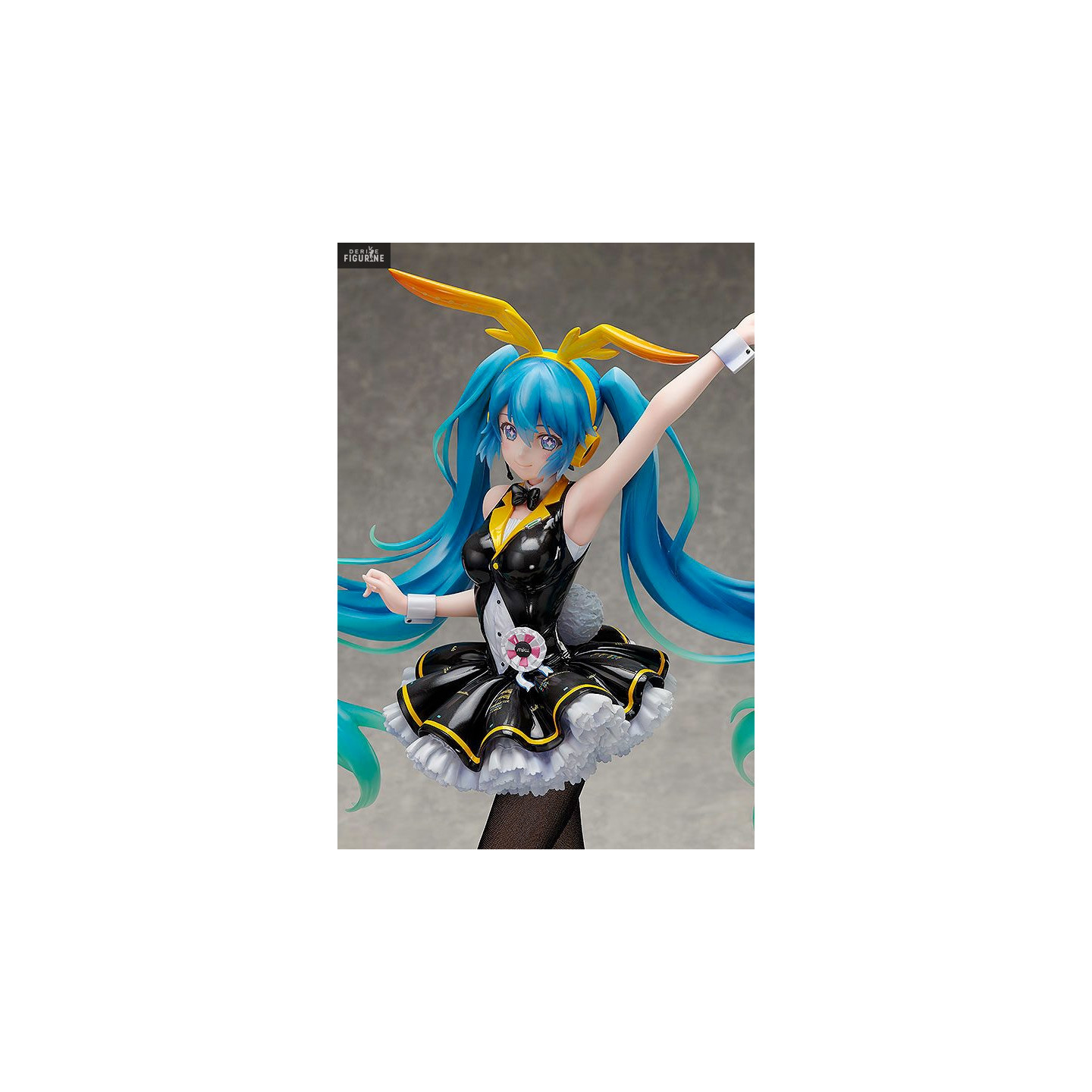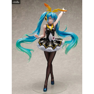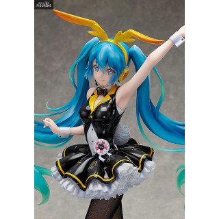 Reconnaissable parmi tant d'autres grâce à sa longue chevelure bleue/verte, Miku Hatsune est de retour avec une belle et grande statuette. Elle porte une robe noire avec une queue de lapin, ainsi que des oreilles jaunes et comme d'habitude cela lui va à ravir.