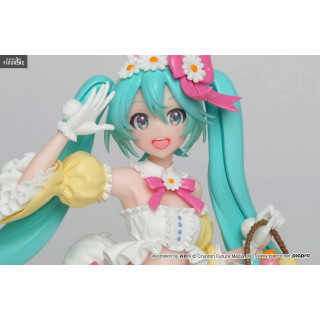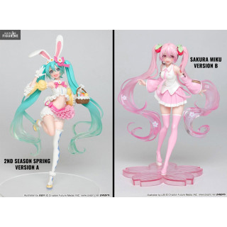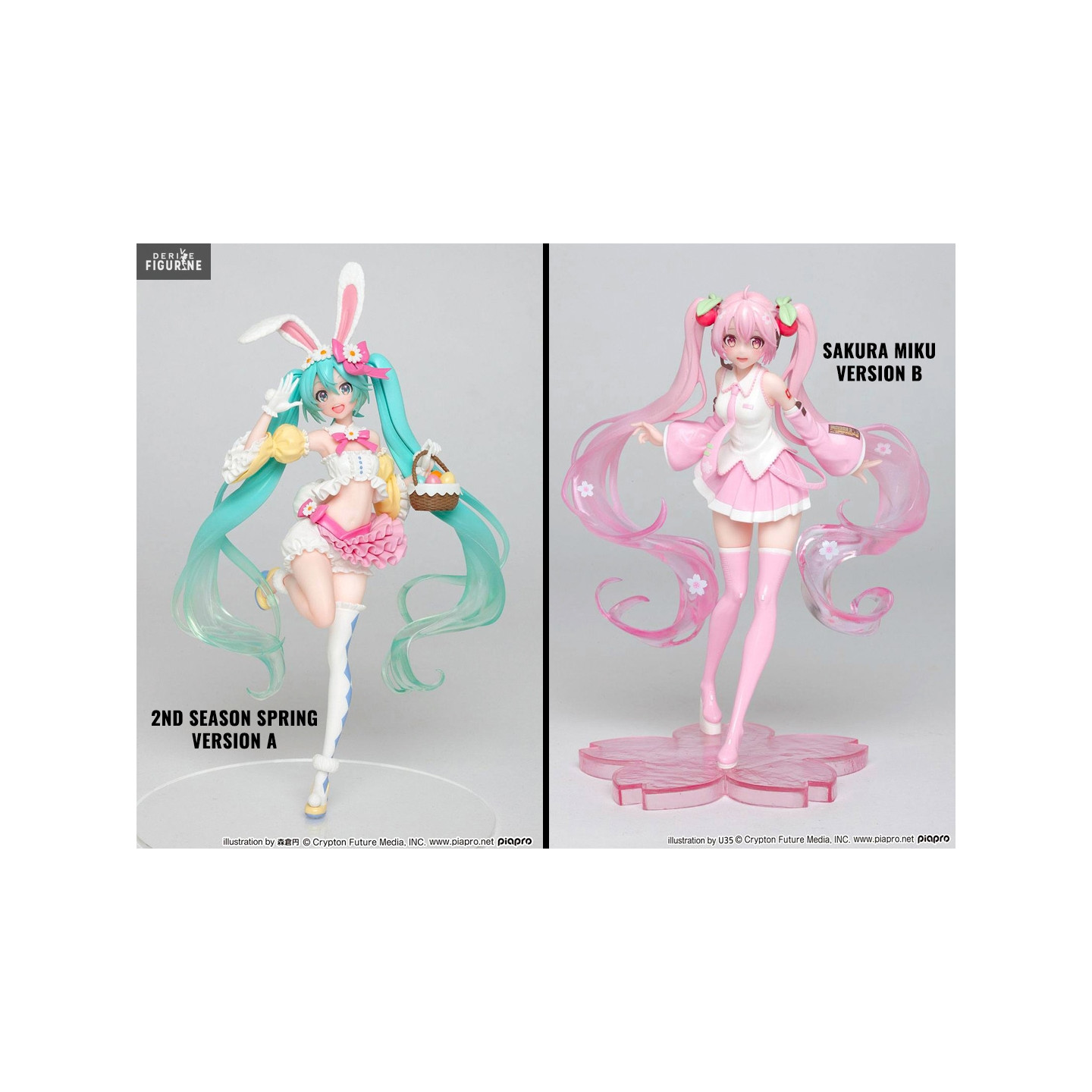 Figurine officielle au choix entre deux versions de Miku Hatsune : 2nd Season Spring (Version A) ou Sakura Miku (Version B) en PVC mesurant environ 18 centimètres de haut. Le fabricant est Taito.