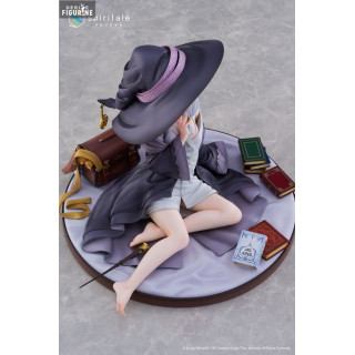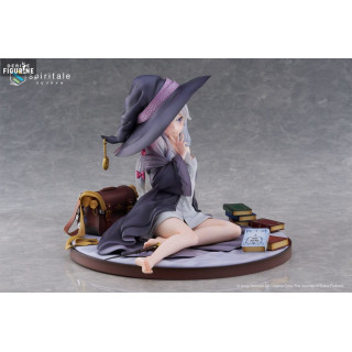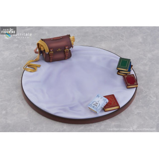 Cette figurine de Elaina, intitulée Rest, capture parfaitement un moment de calme et de réflexion après ses longs voyages. Installée confortablement sur une base ornée de ses livres et de son sac, elle est vêtue d'une robe légère et de son fameux chapeau. Les détails subtils, tels que la texture des pages des livres et le fini satiné de sa tenue, montrent le soin apporté à sa conception.