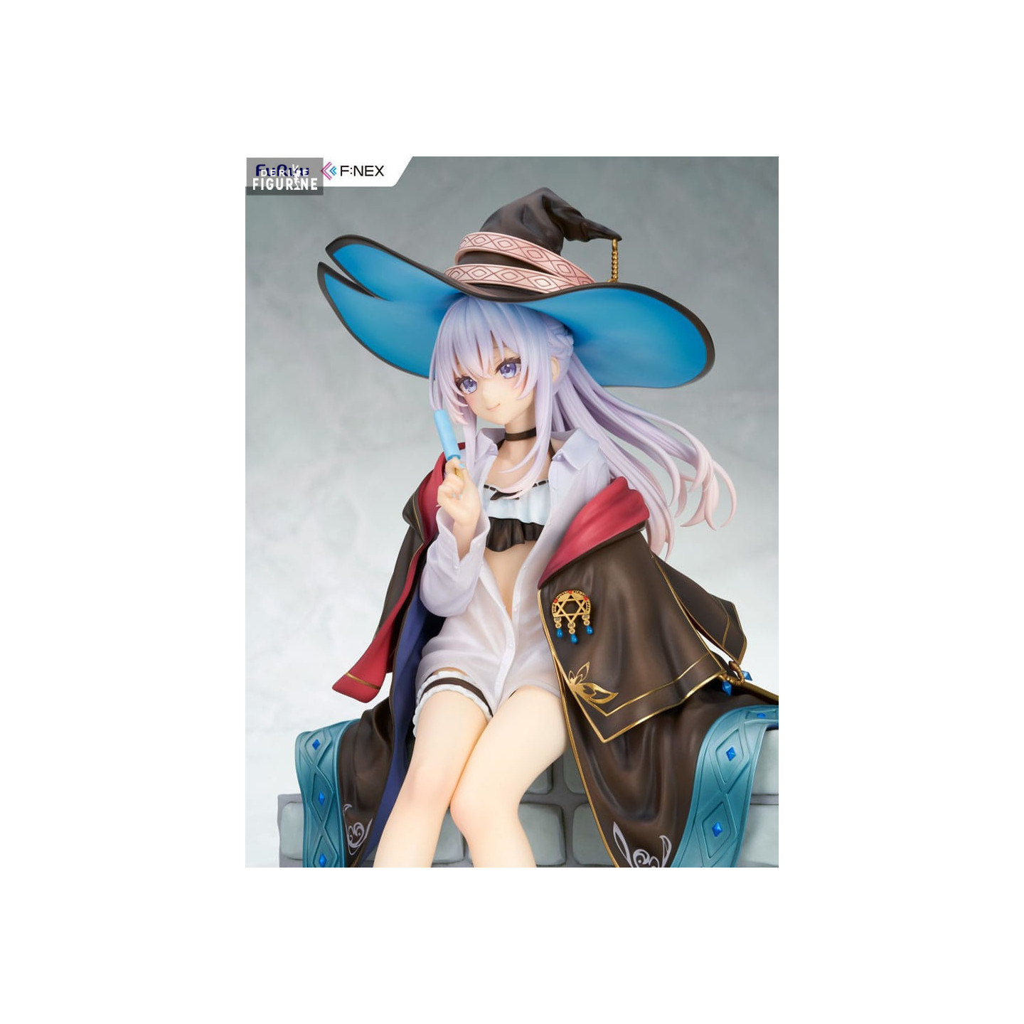 Figurine officielle de Elaina, Summer Vacation en PVC mesurant environ 22 centimètres de haut, à l'échelle 1/7. Elle est issue de la collection F:NEX. Le fabricant est FuRyu.