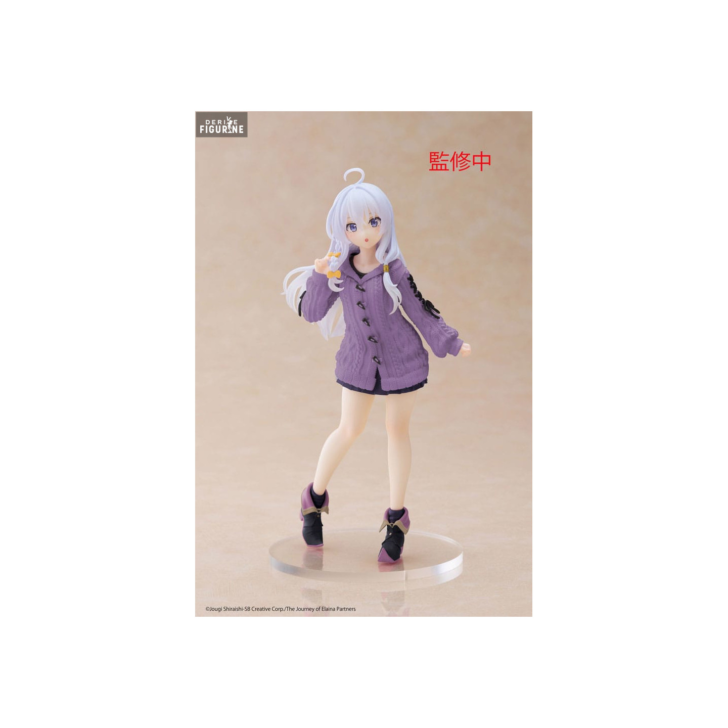Elaina, la célèbre sorcière vagabonde de l'anime Wandering Witch: The Journey of Elaina, est reconnue pour son charme et son goût de l'aventure. Cette figurine officielle présente Elaina dans une tenue décontractée, différente de son habituel costume de sorcière. Vêtue d'une ravissante robe pull violette, elle adopte une posture délicate et détendue, offrant une nouvelle facette de son personnage habituellement intrépide. Ses longs cheveux argentés sont minutieusement sculptés, avec une mèche enroulée qui accentue son apparence adorable.