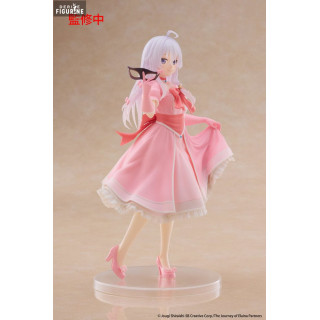 Cette adorable figurine officielle en PVC de 18 cm signée Taito nous propose une version inédite d’Elaina, vêtue d’une magnifique robe de bal rose pastel. Son sourire malicieux est mis en valeur par une pose pleine de grâce, tenant délicatement un masque noir à la main, rappelant l’ambiance envoûtante d’un bal masqué. La robe, ornée de rubans et de dentelles, offre un superbe rendu de légèreté et de mouvement, tandis que ses escarpins assortis complètent l'ensemble avec une touche de raffinement.