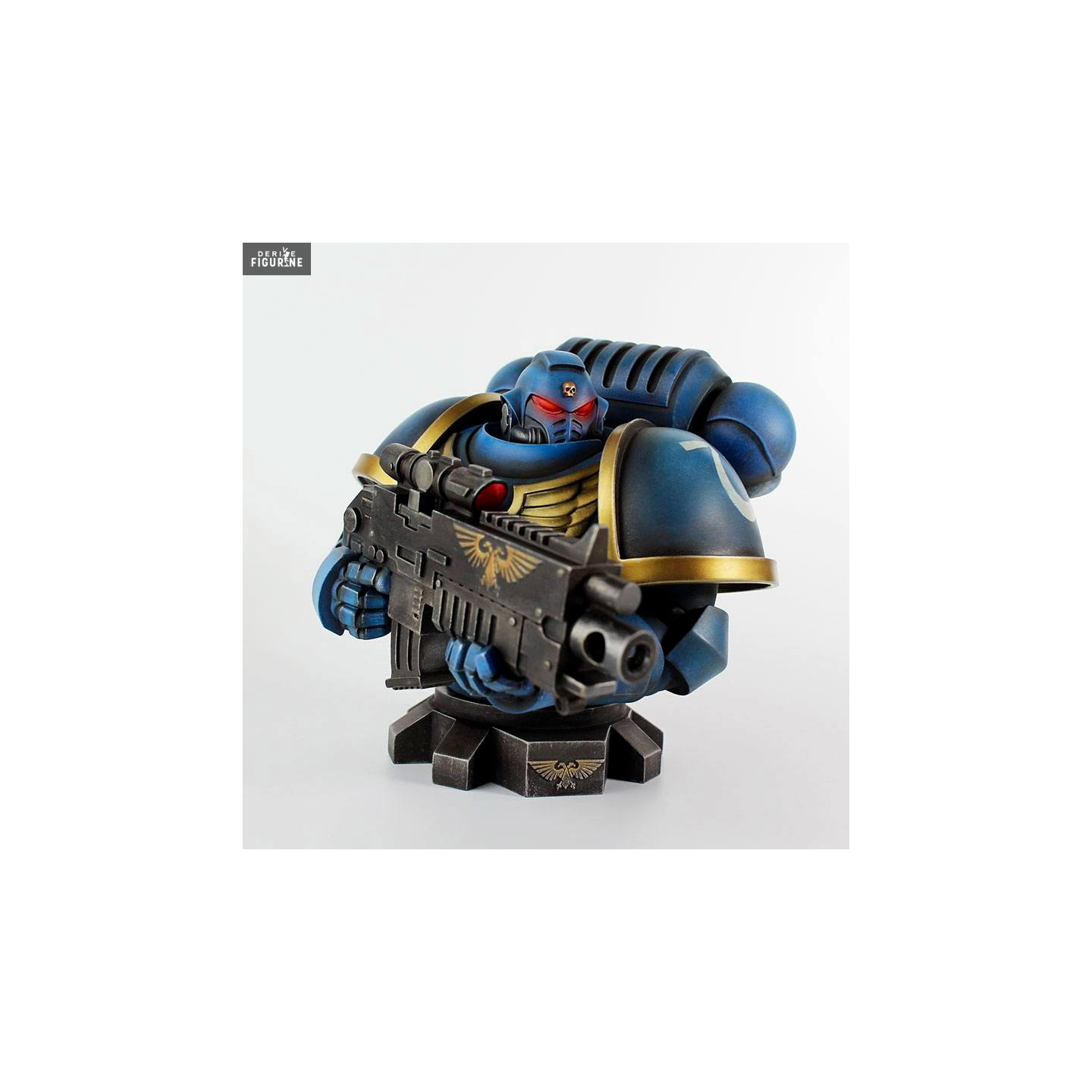 Buste officiel de Ultra Marine Primaris en résine mesurant environ 16 x 16 x 20 centimètres. Le fabricant est Semic.