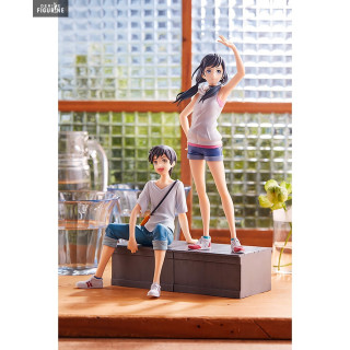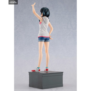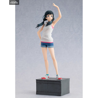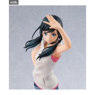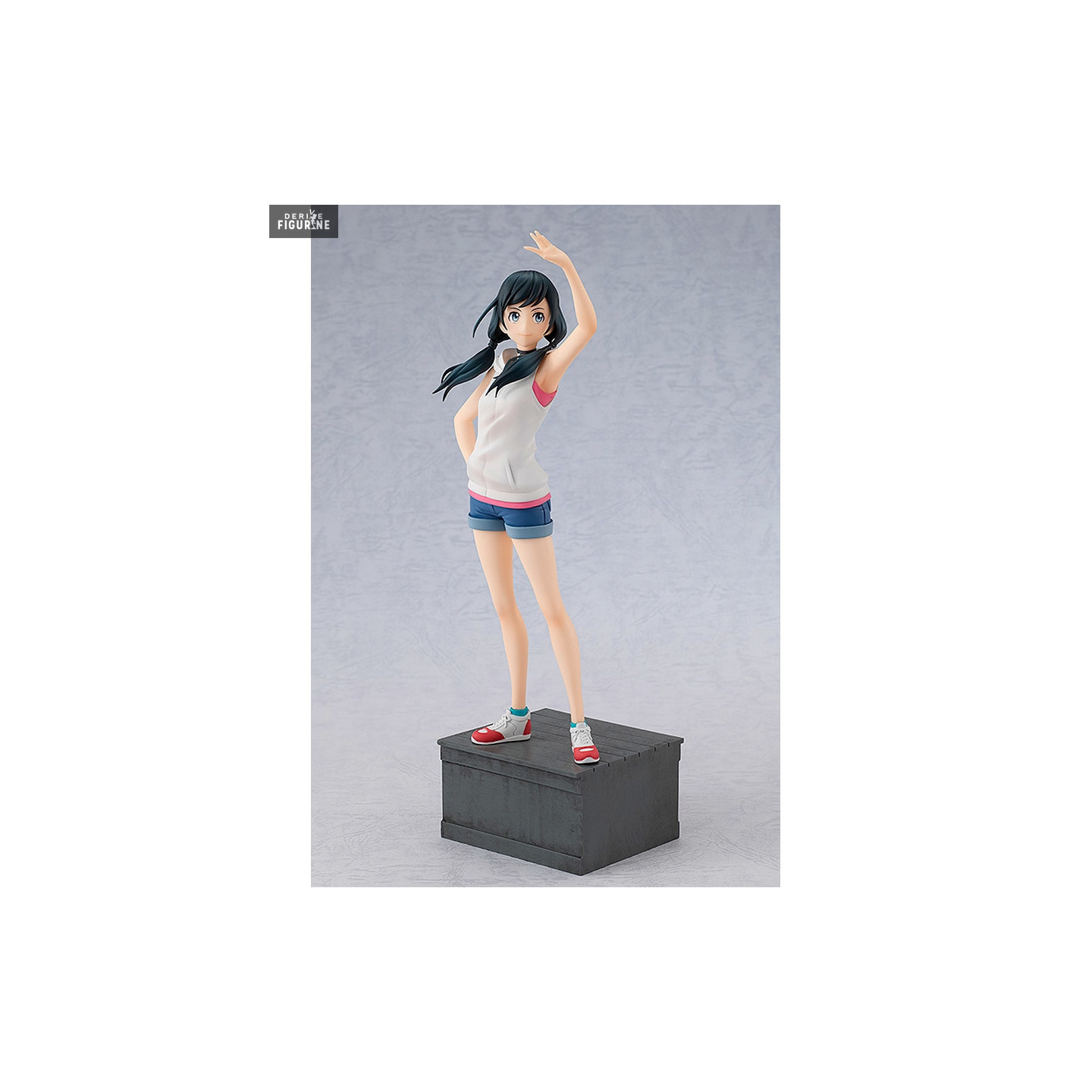 Cette figurine capture l’esprit rayonnant de Hina dans une pose dynamique et pleine de grâce, levant la main vers le ciel comme pour invoquer le soleil. Habillée de sa tenue décontractée emblématique – un débardeur blanc avec des bordures roses, un short bleu marine et des baskets colorées – elle reflète une scène marquante du film. La précision des détails, de ses cheveux flottant légèrement au vent jusqu’à son expression joyeuse, évoque toute la chaleur et la vivacité du personnage.